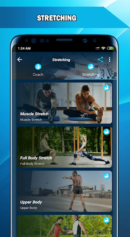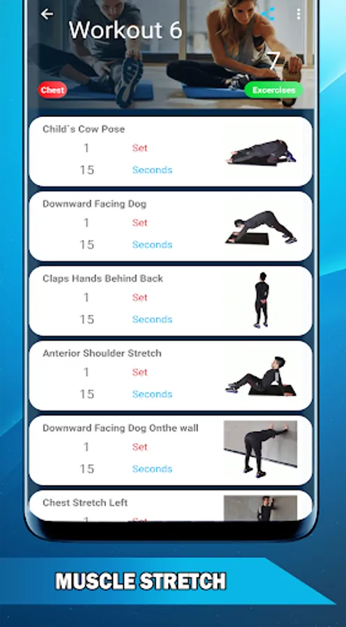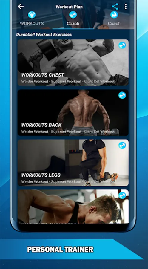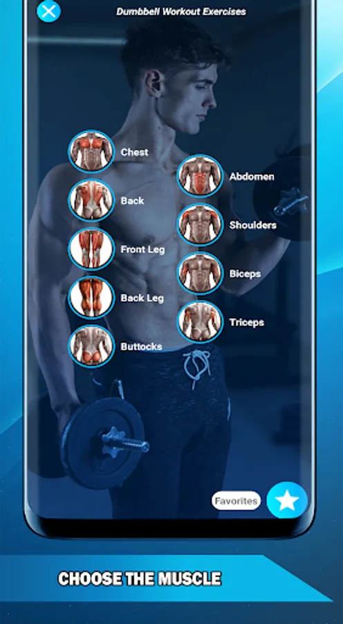 Training by muscle group (Fitness app has exercises for abdominals, chest, legs, shoulders, biceps and exercises for the whole body)