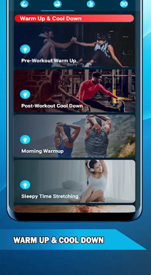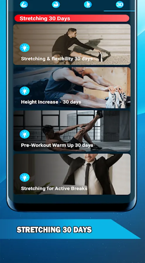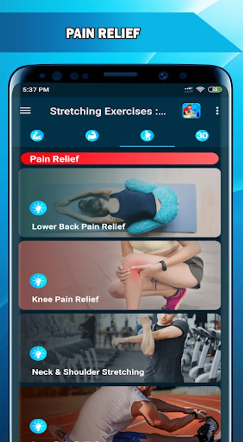 - Muscle Stretch (Back, legs, Arms, Neck, Shoulders, Buttocks, abdomen)