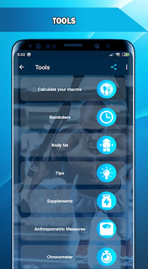 Training by muscle group (the Fitness application has exercises for abdominals, chest, legs, shoulders, biceps, buttocks and exercises for the whole body)