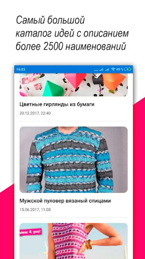 More than 3000 descriptions of handicrafts and various ideas that amaze the imagination. The main direction of knitting and crochet, but also you will find patterns for sewing and patterns for embroidery, weaving beads and not only. Regular updating of ideas from the world of needlework.