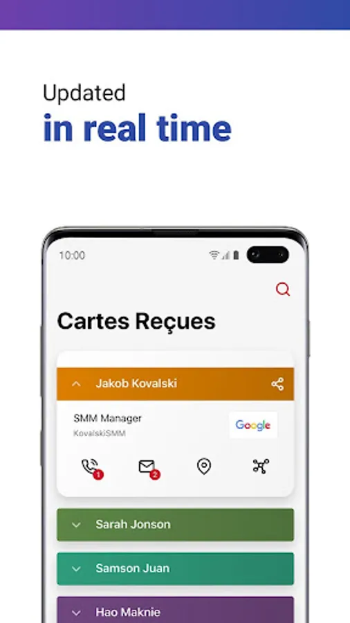 iCheck allows you to easily create a digital business card. Integrate all your communication via Social Networks, Website, PDF Catalog, Online Catalog, PDF Document all updated in real time. When you change information on your business card, all people who have received your business card will have the update automatically.