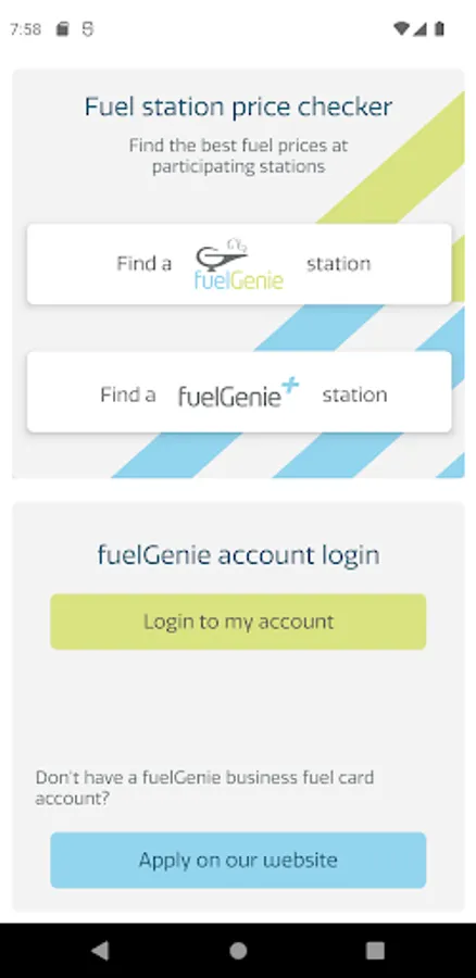 For fuelGenie account holders you can manage your account via the app. This includes view your spend and available credit, view invoices, see when your next payment will be due, manage your fuel cards, and request additional and replacement cards.