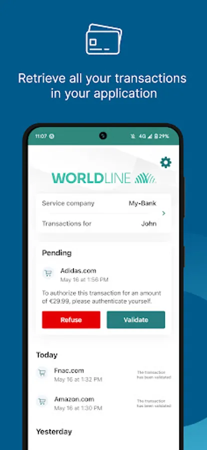 Worldline Authenticator is an application that enables strong customer authentication on mobile applications with two factor authentication. Through the use of biometrics or a PIN code in combination with the possession of your device, your sensitive operations can be validated in complete security.