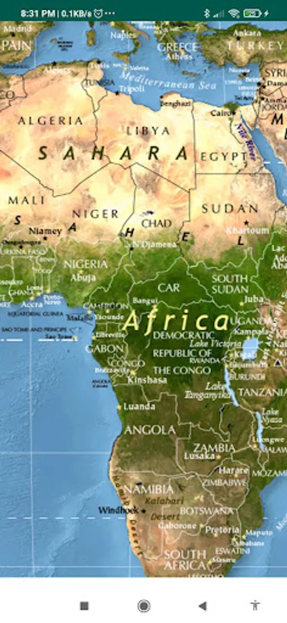Physical map world is a simple Android app that displays a map of the world taken from Wikimedia.