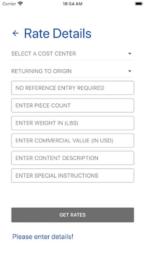 The application allows clients to create shipments. By entering new details or selecting preexisting data, clients can control where their goods are received and delivered. This app also grants them the ability to receive quotes, gaining a more detailed view of the costs before submitting a shipment. Furthermore, clients can track existing shipments, see the details of their shipments, submit an inquiry regarding a shipment, and finally subscribe to a shipment, to receive notifications about its status.