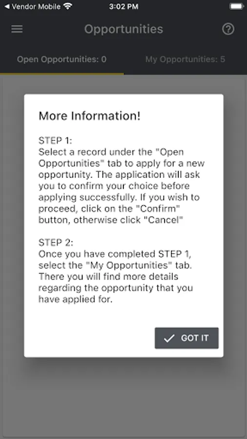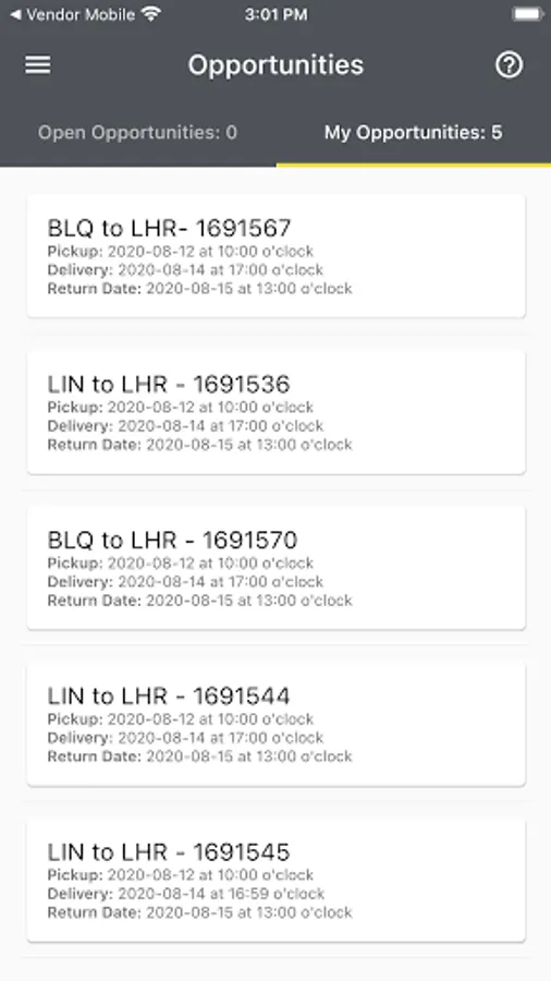 The application notifies when a new opportunity is created through push notifications. Then the user can choose to accept the opportunity. By accepting work, the user may review collection and delivery information.