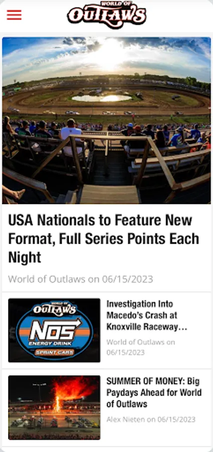 Get the latest news, schedules, point standings, driver bios, and video highlights for the World of Outlaws Sprint Cars and Late Models.