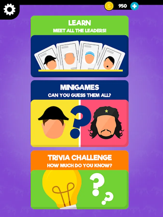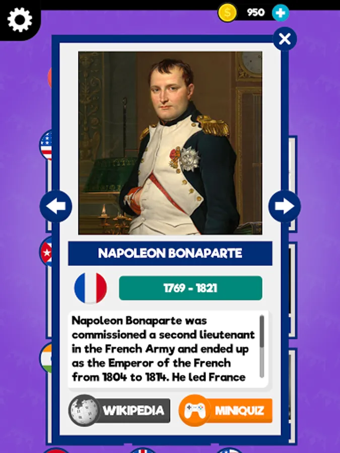 ★ MINIGAMES ★ are waiting for you to test your history knowledge after you got to know the leaders! Test yourself in a variety of questions and answers about leaders, such as their country or what they're known for.