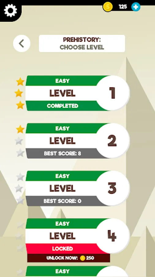 Try to beat all levels in every category! For each completed level, you receive stars. Can you get a star in all of these trivia games?