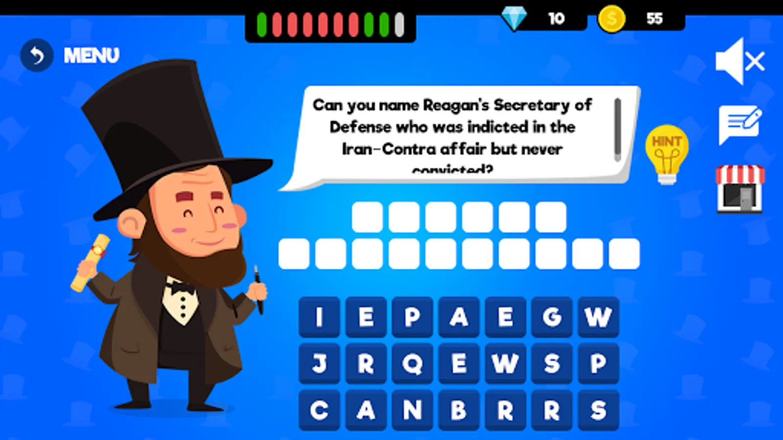 ★ MINIGAMES ★ are waiting for you to test your history knowledge after you got to know the presidents! Test yourself with a variety of questions and answers!