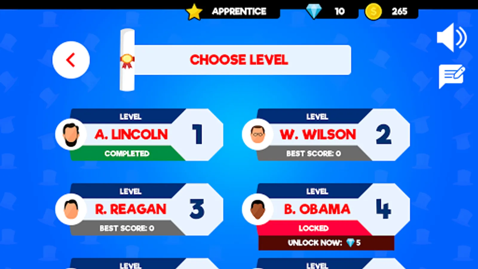 With hundreds of questions and answers, this history trivia app will cover all 44 US presidents. You will learn all the most important information about them, as well as many interesting and unknown facts of their lives.