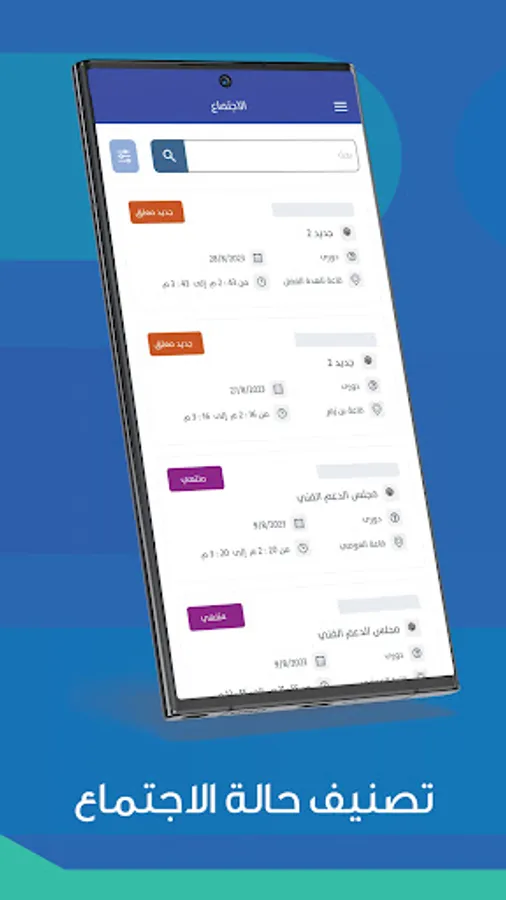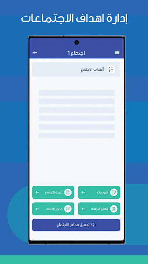 The meetings monitoring application is a distinctive and fast interface for the user to follow the activities and meetings of the councils and chambers of which he is a member. It allows him to view the minutes of the meetings, review the meeting agenda and the attendance of members, and also enables him to add recommendations to the meeting and download the minutes of the meeting.