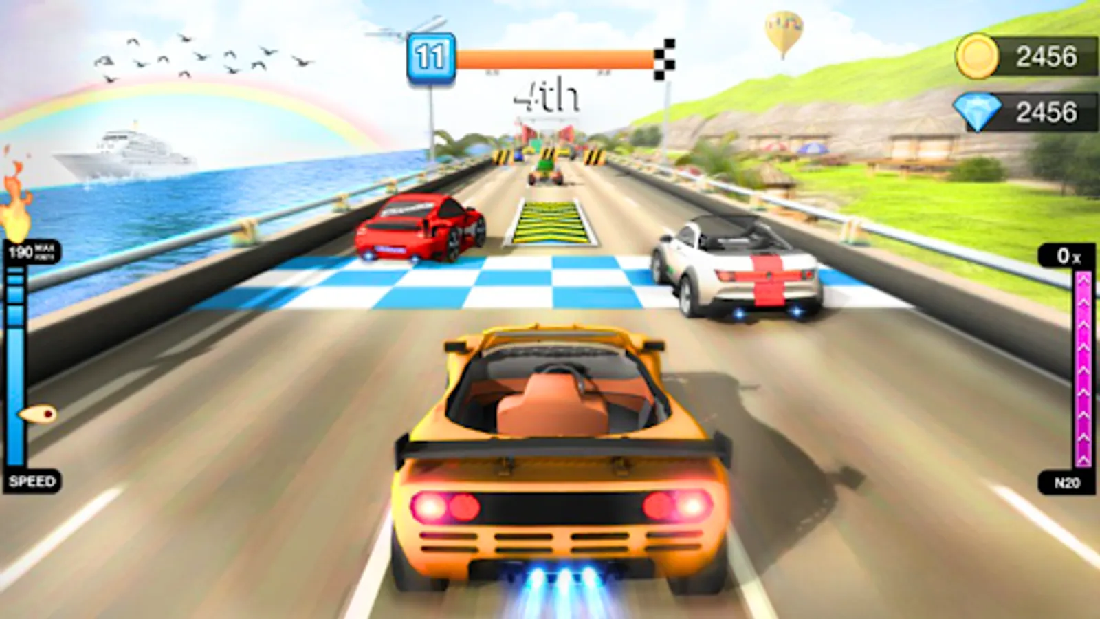 This car racing game challenge game is not just about fast-paced action; it's also a stunt simulator game that rewards strategy and precision. Plan your moves carefully, and analyse the track ahead in this gt car and bike stunt game. The bomb in your car adds a layer of urgency to this stunts racing game.