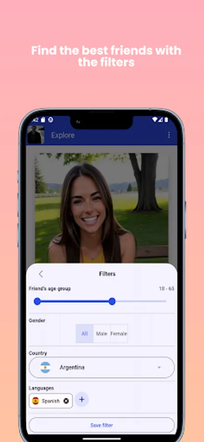You can pick the age, country, and language preferences you want to connect with, and swipe through profiles until you find someone you like. If they like you back, you'll be matched, and you can start chatting through text, voice messages, or pictures.