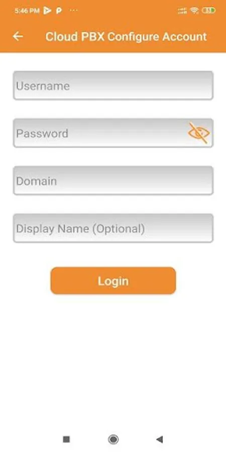 4. Once configured, click on login button to register this application with SIP server. (Make sure that your android phone is having internet connectivity)