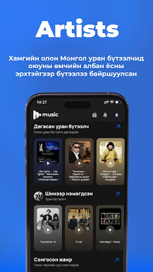 As a music lover and a person who recharges his senses with melodious tunes, by using Mmusic, in addition to the features mentioned above, you can be with the daily updated sound library and technology improvements every step of the way. Also, please share your opinions and comments about our services with us and contribute to the improvement of the music industry ecosystem in Mongolia.