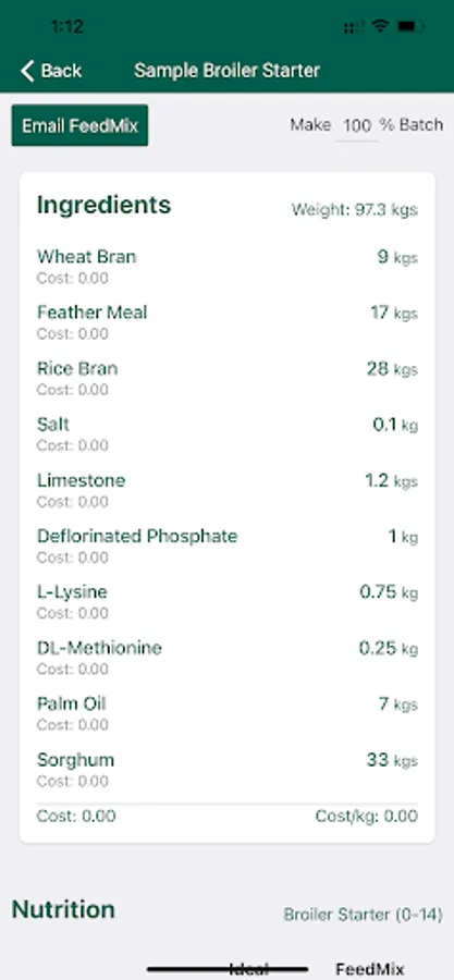 FeedMixer is meant for farmers intending to self-mix their own chicken and poultry feed with locally available ingredients including ingredient cost. While the FeedMixer app is intended to provide guidance across a range of breeds and bird ages, further tailoring of any feed mix should be considered based on the local environment where a farmer is rearing their flock.