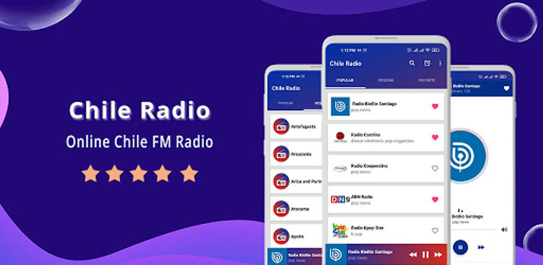 This app is the easiest and simplest way to listen and enjoy your favorite and most popular online fm from your android device. All Chile fm radio stations stream at one app for free using the internet.