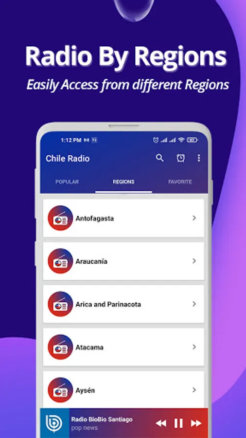 Chile Radio brings you the best 800+ online radio stations from all 16 regions of Chile. This is the radio application where everyone can listen music, audio, news, talk, comedy, entertainment etc from every corner of the world.