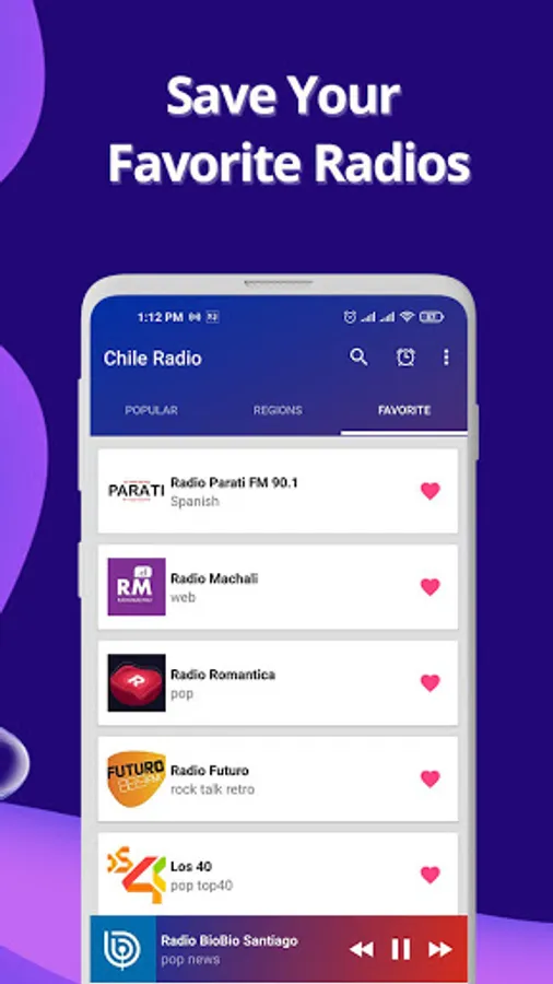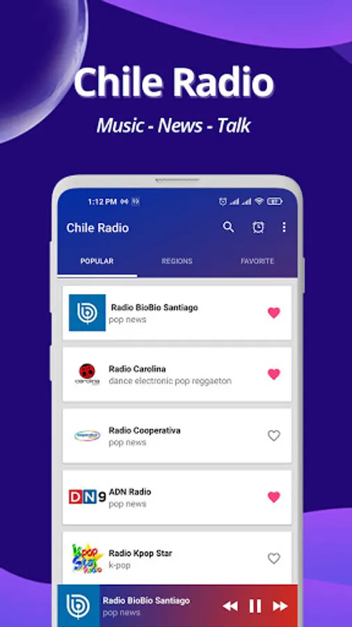 Radio Chile is an android radio application where you can listen different fm online broadcasted from every online radio stations of Chile. It helps you to find different fm online radios in different language as well. Apart from the radio player, this application let you to enjoy with soothing music from different radio so this is also a music player application.