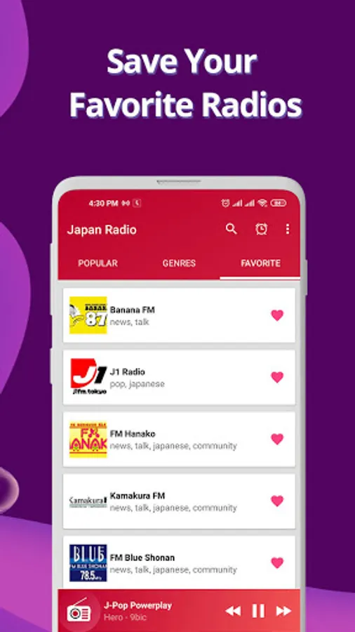 This app is the easiest and simplest way to listen and enjoy your favorite and most popular online fm from your android device. All Japan fm radio stations stream at one app for free using the internet.