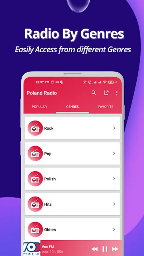 Poland Radio brings you the best 300+ online radio stations from all regions of Poland. This is the radio application where everyone can listen music, audio, news, talk, comedy, entertainment etc from every corner of the world.