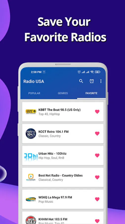 This is the simplest way of listening to your favorite and most popular online fm on your android device. All USA radio stations streams at one app. Just tune in and tune up :)