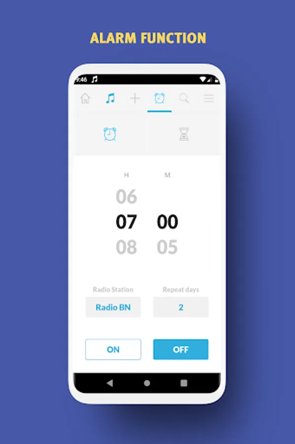 ☛ Wake-up/alarm function and sleep timer to program the closing of the application