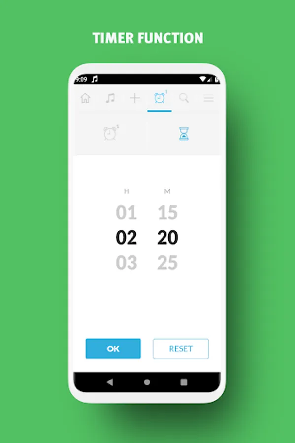 β Wake-up/alarm function and sleep timer to program the closing of the application