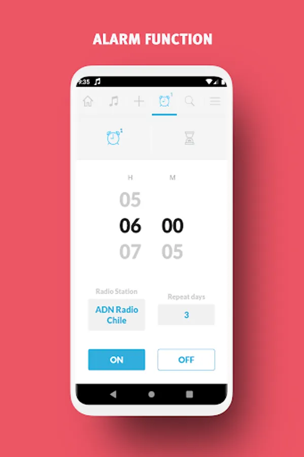☛ Wake-up/alarm function and sleep timer to program the closing of the application