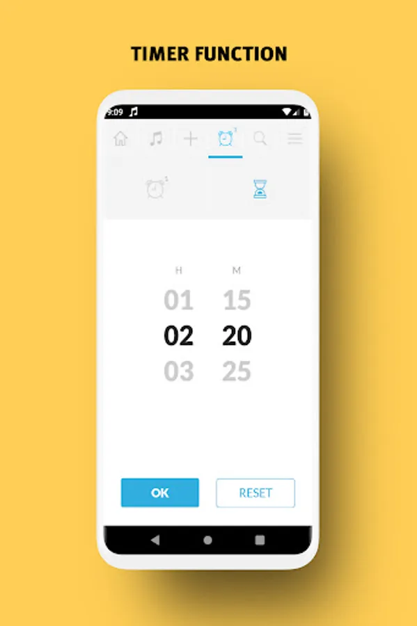 â Wake-up/alarm function and sleep timer to program the closing of the application