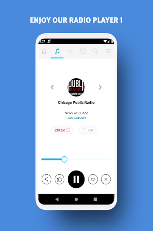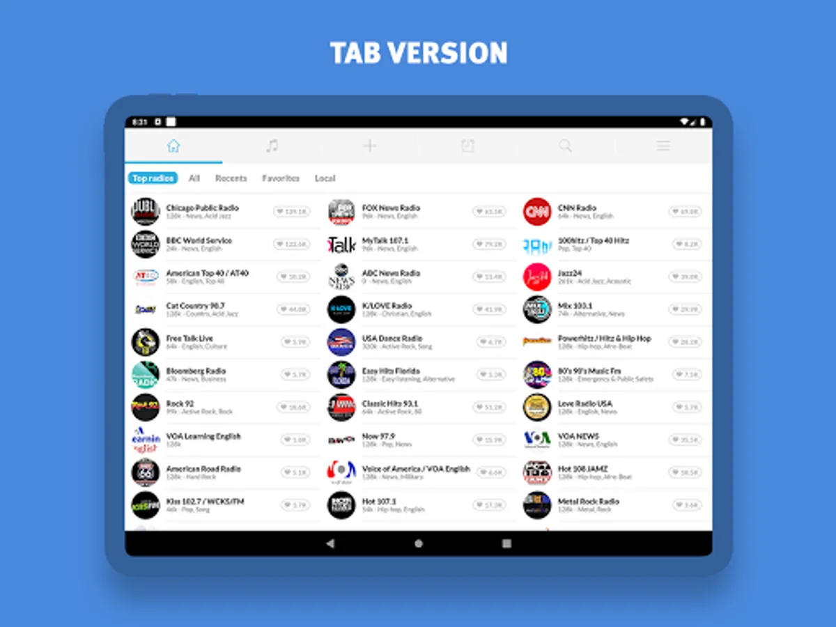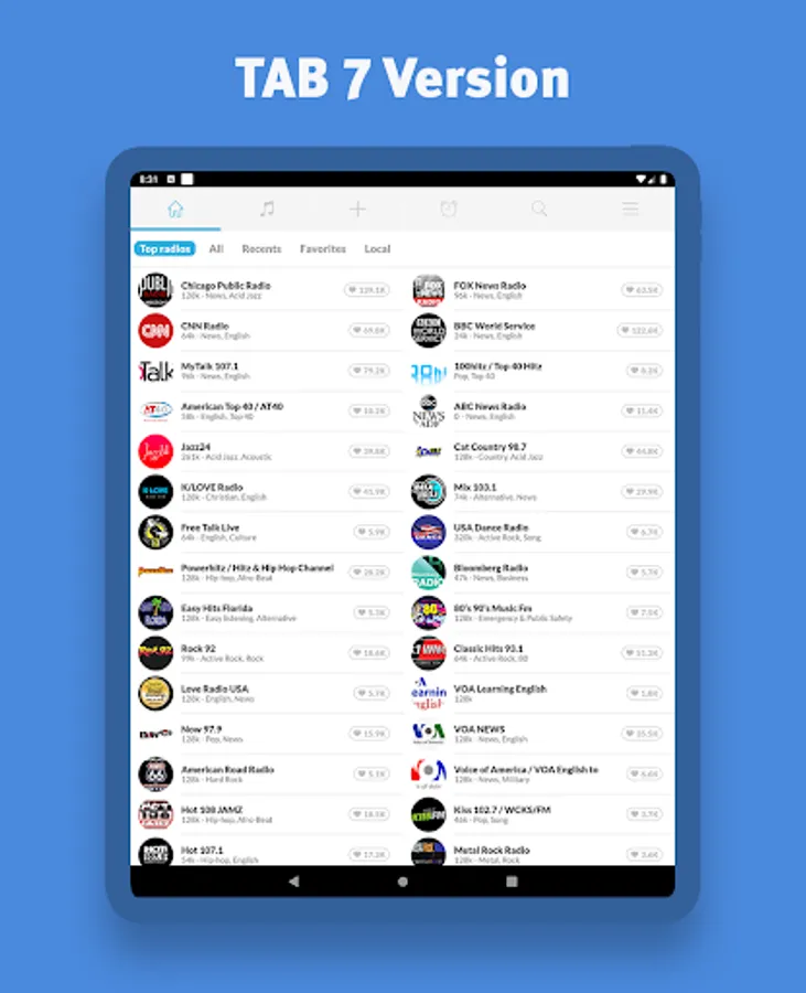 - Music: Listen to your favorite music, pop, jazz, Latin music, classical music, country or rock on the many music radios!