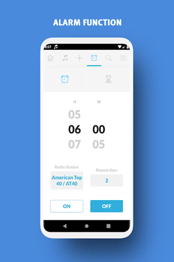 β Wake-up/alarm function and sleep timer to program the closing of the application