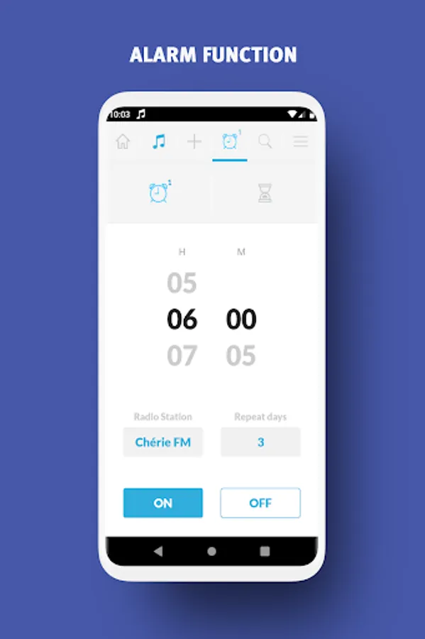 ☛ Wake-up/alarm function and sleep timer to program the closing of the application