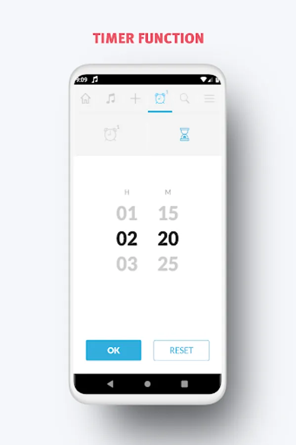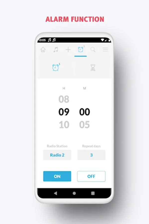 â Wake-up/alarm function and sleep timer to program the closing of the application