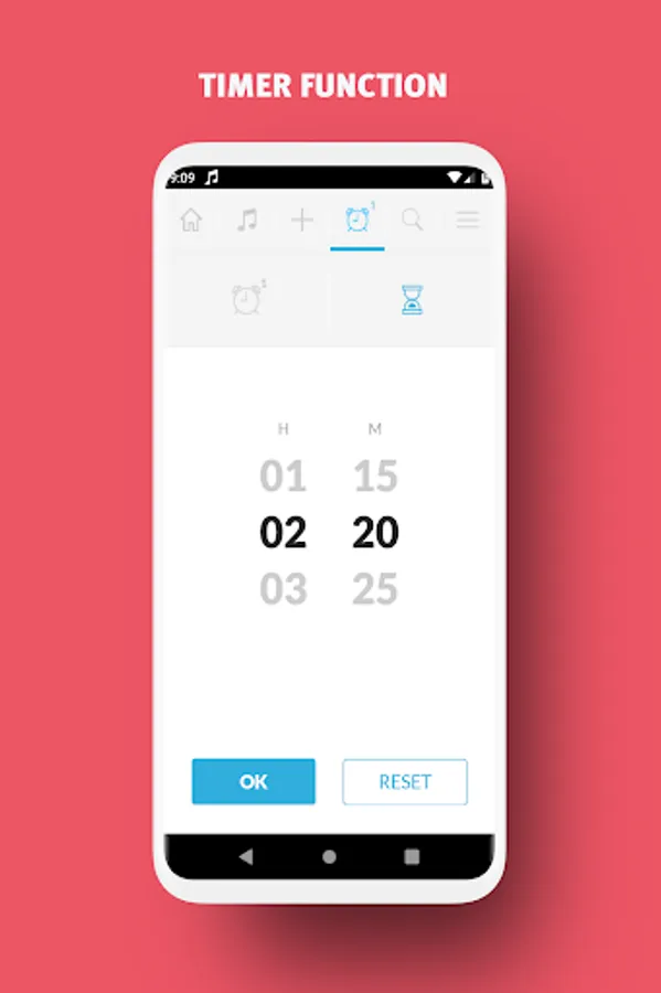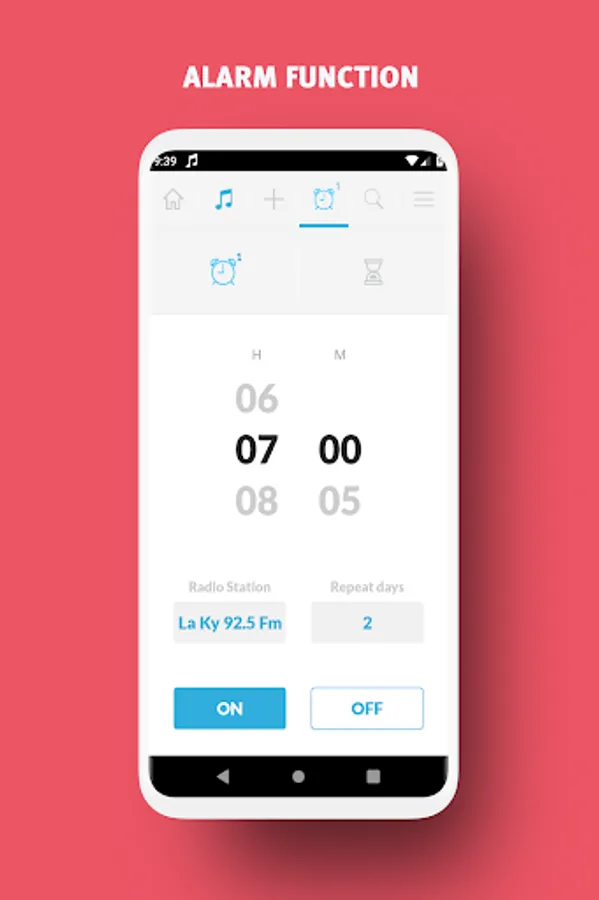 â Wake-up/alarm function and sleep timer to program the closing of the application