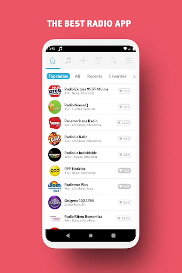 With the Radio Peru application, listen live to all your favorite FM, AM or online radio stations from anywhere in the world!