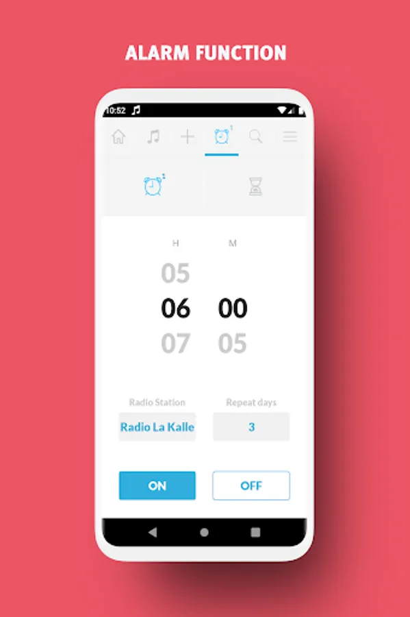 β Wake-up/alarm function and sleep timer to program the closing of the application