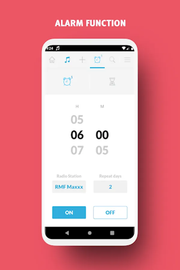 โ Wake-up/alarm function and sleep timer to program the closing of the application