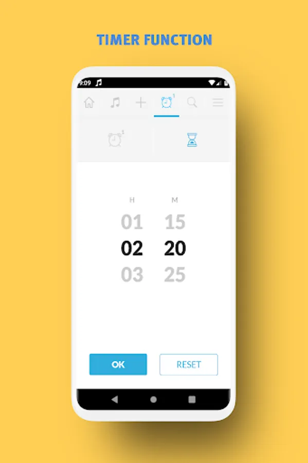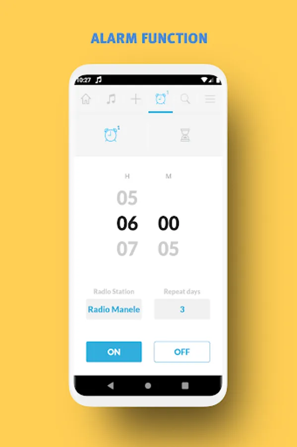 â Wake-up/alarm function and sleep timer to program the closing of the application