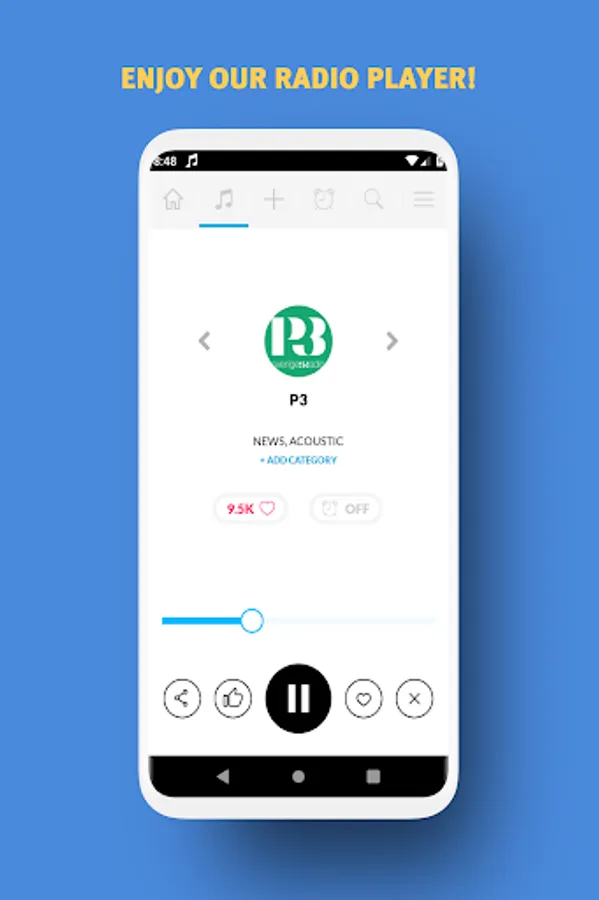 Ads are present in our application, it helps to support our great team and continue to offer you a free radio service! But you can switch in one click to the version without ads displayed ;) If you like our app, don't hesitate to leave us a review on the Play Store, thank you π
