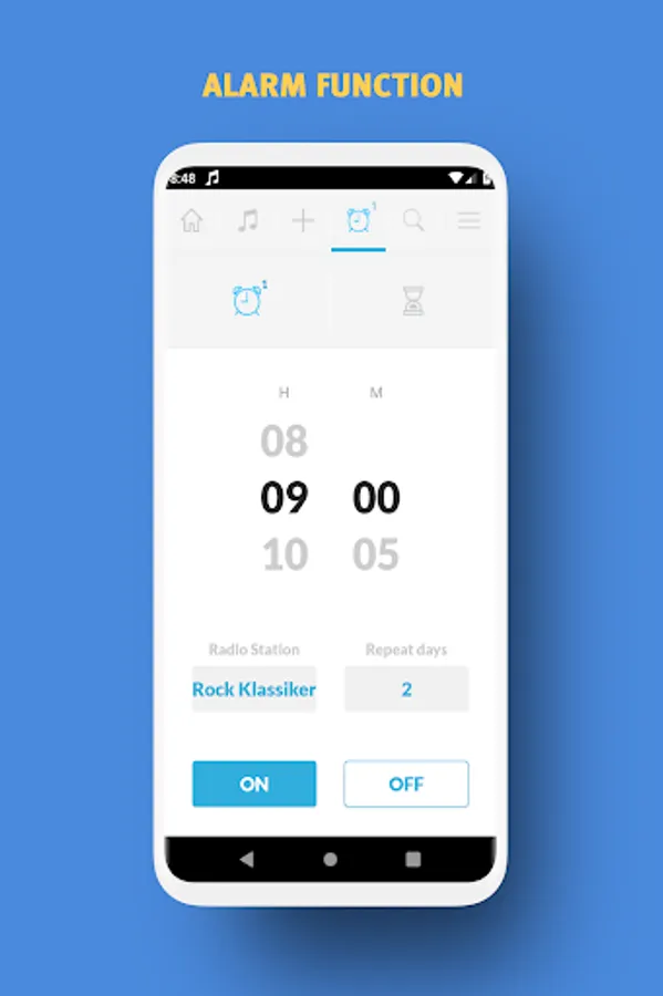 β Wake-up/alarm function and sleep timer to program the closing of the application