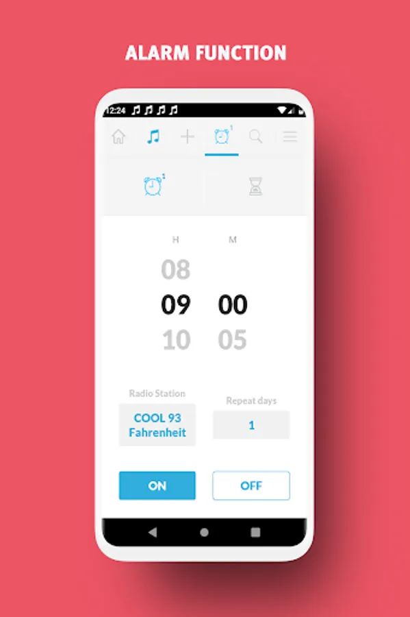 ☛ Wake-up/alarm function and sleep timer to program the closing of the application