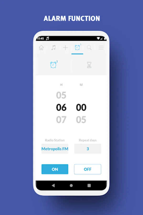 ☛ Wake-up/alarm function and sleep timer to program the closing of the application