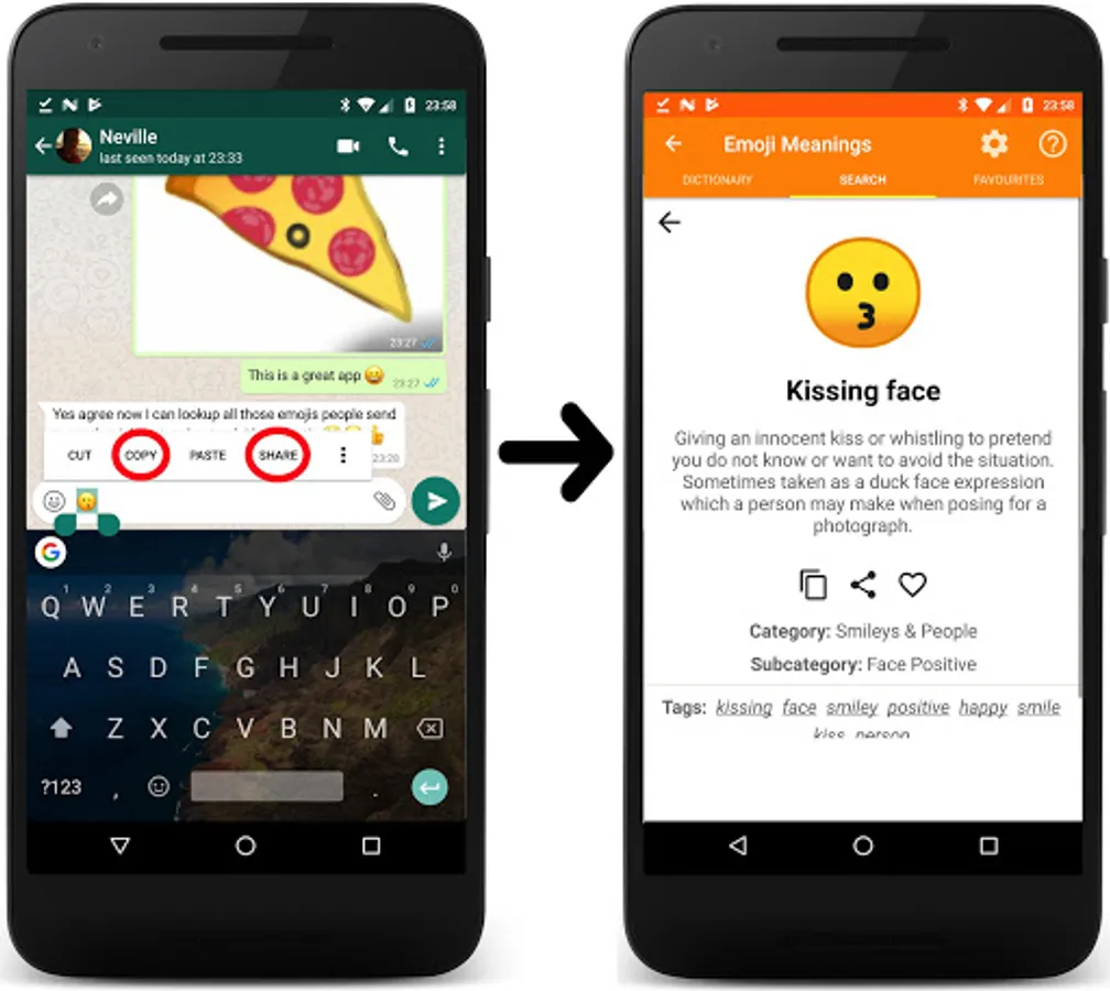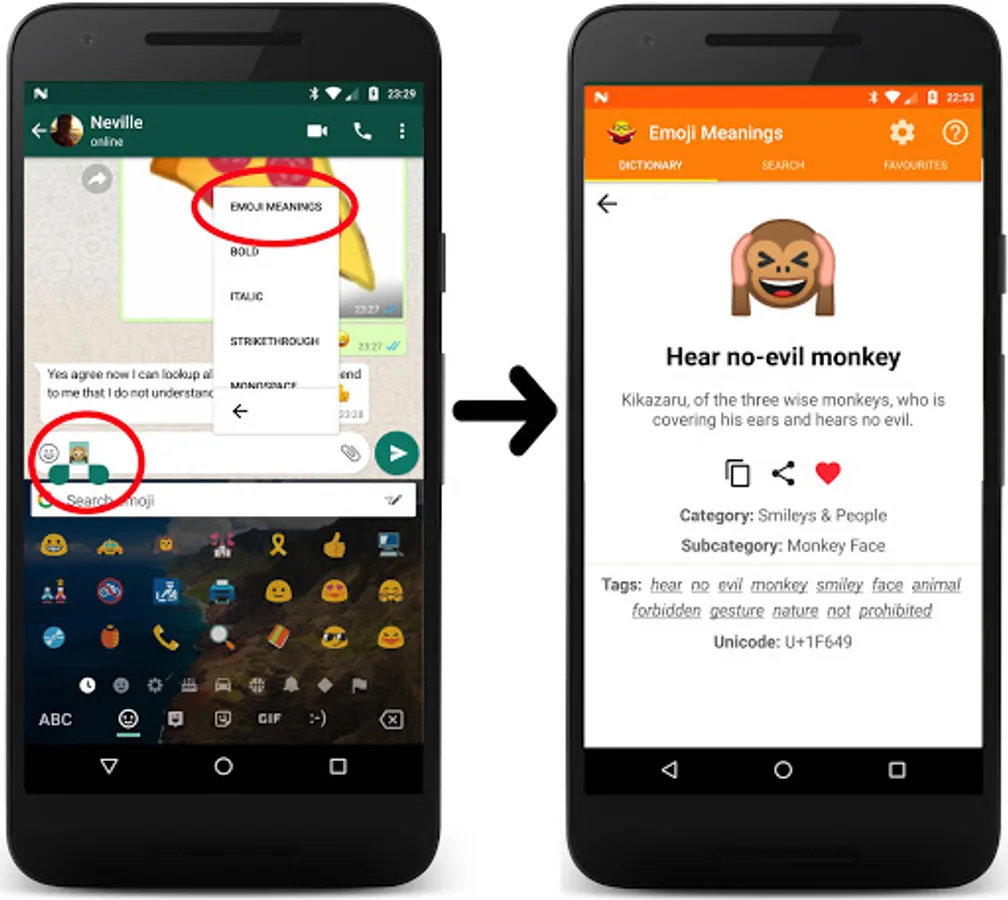Check the meaning of any Emoji from any app anytime π It's like learning a new language.