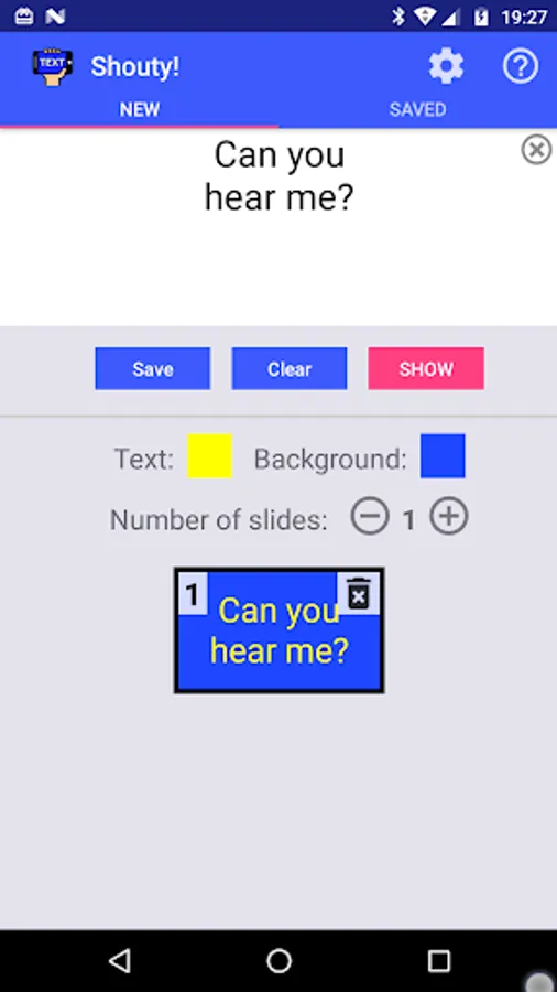 Ever in a noisy place 🎶 🚧👷 and can't hear what people are saying and want to speak to someone over the noise. Shouty - the 'Big Text Banner app' is the answer 😎.