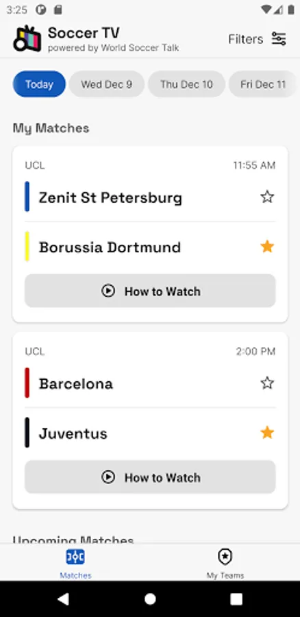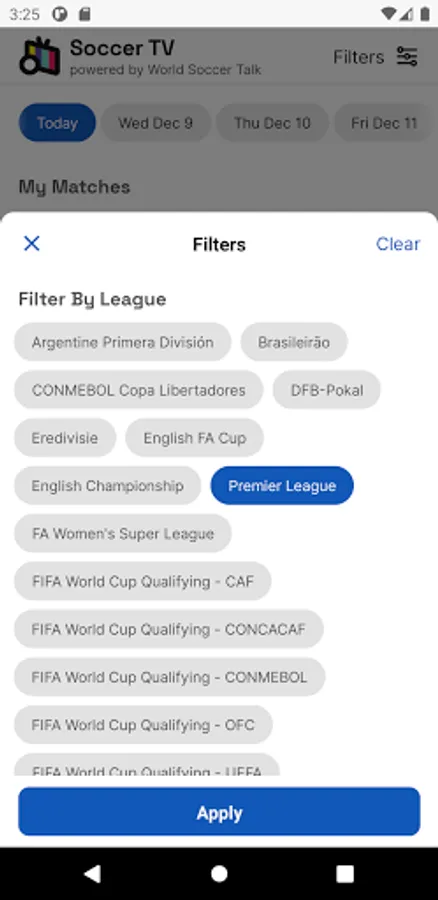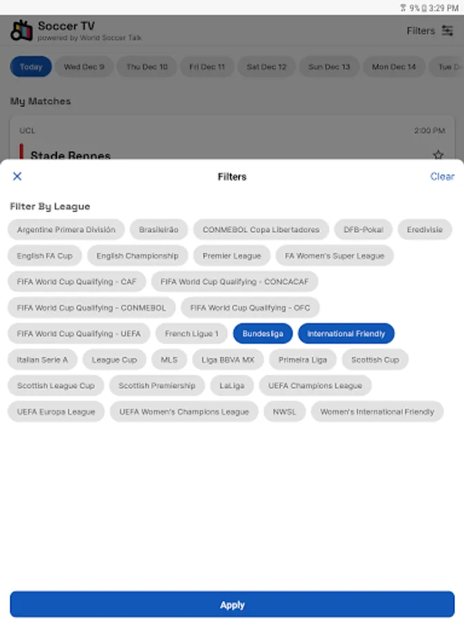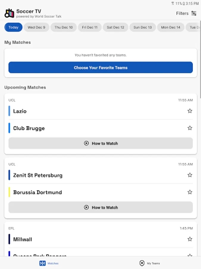 The Soccer TV Schedules app offers the most comprehensive and accurate listings of soccer games available via U.S. television and streaming. Features no advertising and no spoilers.