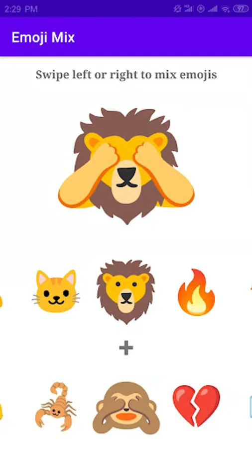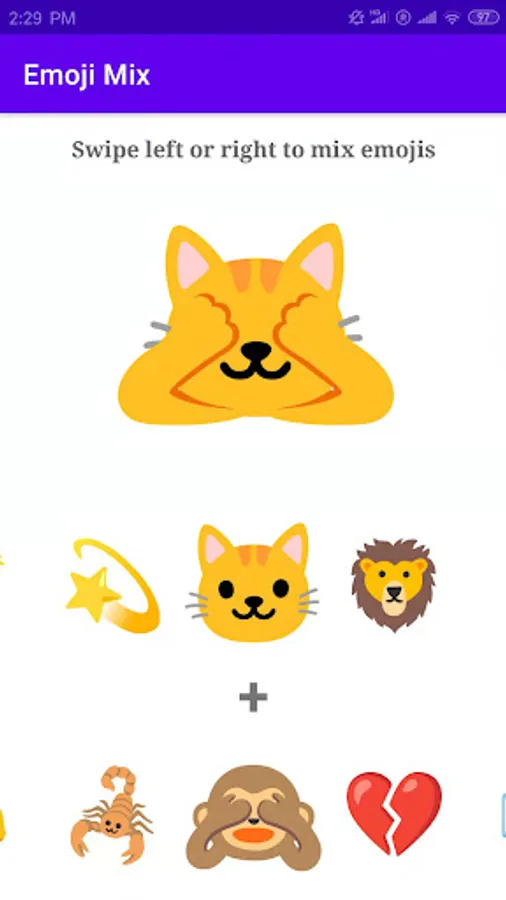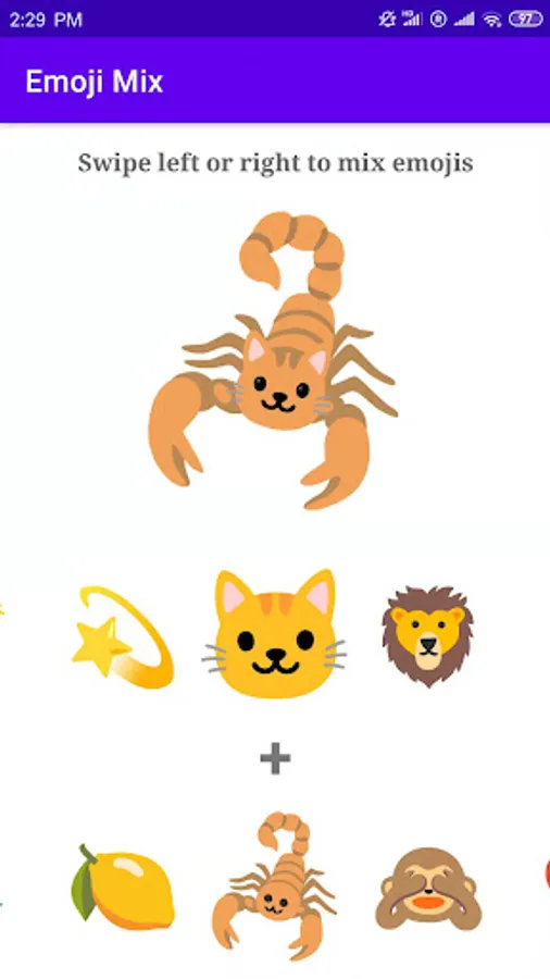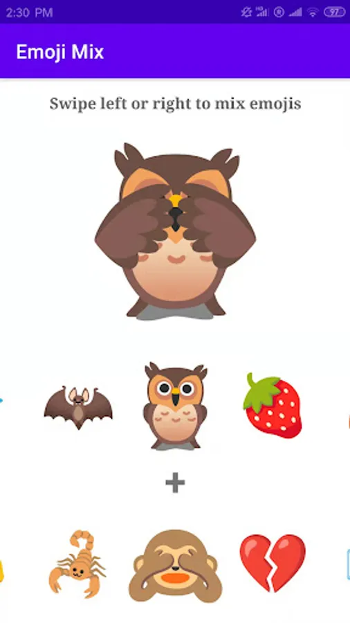 Just choose two emojis, and with a swipe, you get tens of different and unique mixes!