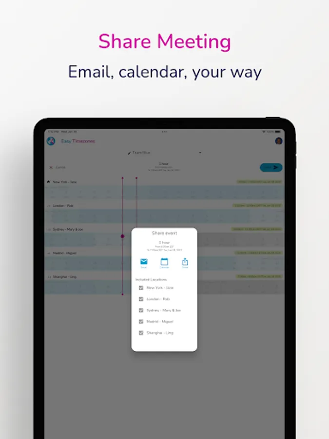 ⭐️ Meeting planner: Share meetings and events to calendar, or send them by email or text