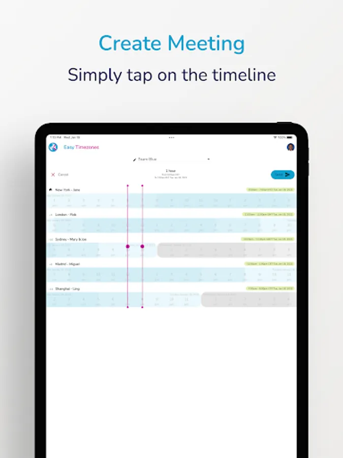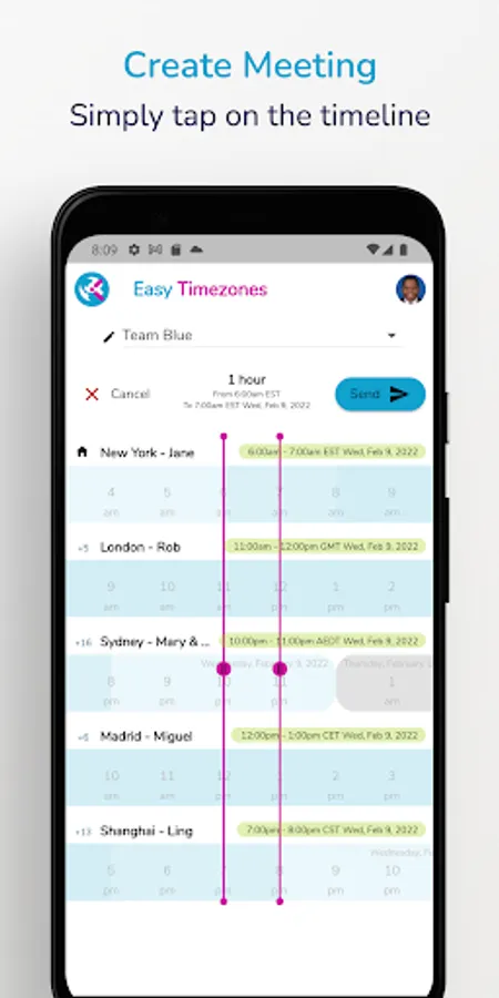 » 1. Swipe in timeline to find the best time to call or meet
